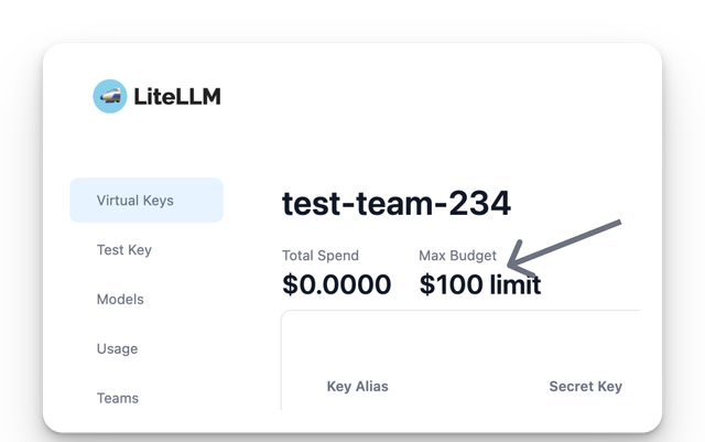 max_budget_in_team: 100 # Optional[float], optional): $100 budget for the team. Defaults to None.