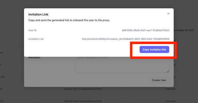 • internal_user: can login, view/create/delete their own keys, view their spend. Cannot add new users.