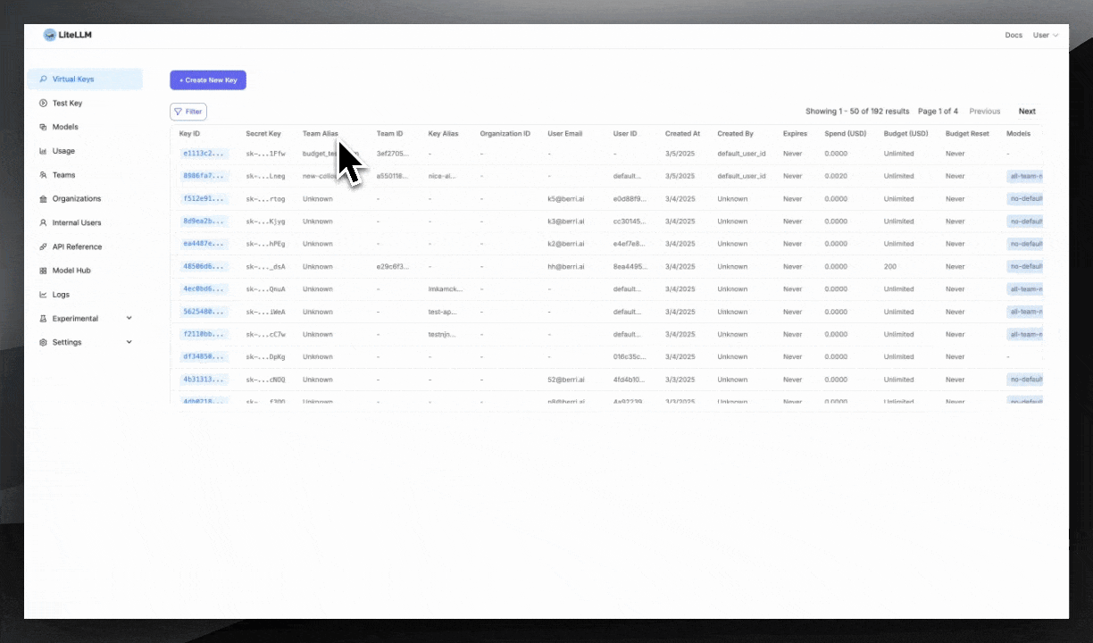 On LiteLLM, you can create Organizations, Teams, Users and Virtual Keys. For this tutorial, we will create a Team and a Virtual Key.